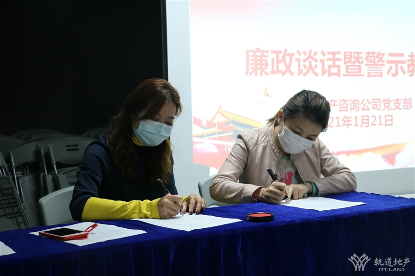 活動中,軌道地產咨詢公司黨支部書記、董事長劉燕組織與會人員學習了《關于兩起違反中央八項規(guī)定精神問題典型案例的通報》等相關文件,并集中觀看了警示教育片《縣委書記為何滑向深淵》。軌道地產咨詢公司各部門、各項目負責人還與黨支部書記劉燕簽訂了《黨風廉政建設承諾書》。