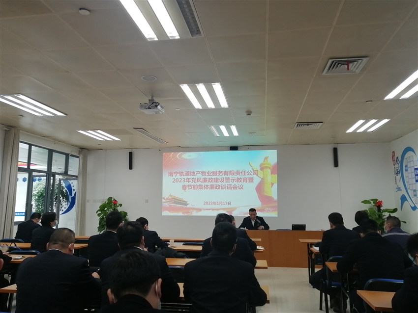 為深入學(xué)習(xí)貫徹黨的二十大及二十屆中央紀(jì)委二次全會(huì)會(huì)議精神,推進(jìn)公司全面從嚴(yán)治黨和黨風(fēng)廉政建設(shè)工作,增強(qiáng)全體黨員干部的廉潔自律意識(shí),營(yíng)造風(fēng)清氣正的廉潔過節(jié)氛圍,2023年1月17日南寧軌道地產(chǎn)物業(yè)公司黨支部在東站樞紐培訓(xùn)室召開2023年黨風(fēng)廉政建設(shè)警示教育暨春節(jié)前集體廉潔談話,公司全體黨員、入黨積極分子、中層管理人員共47人參加了此次會(huì)議。